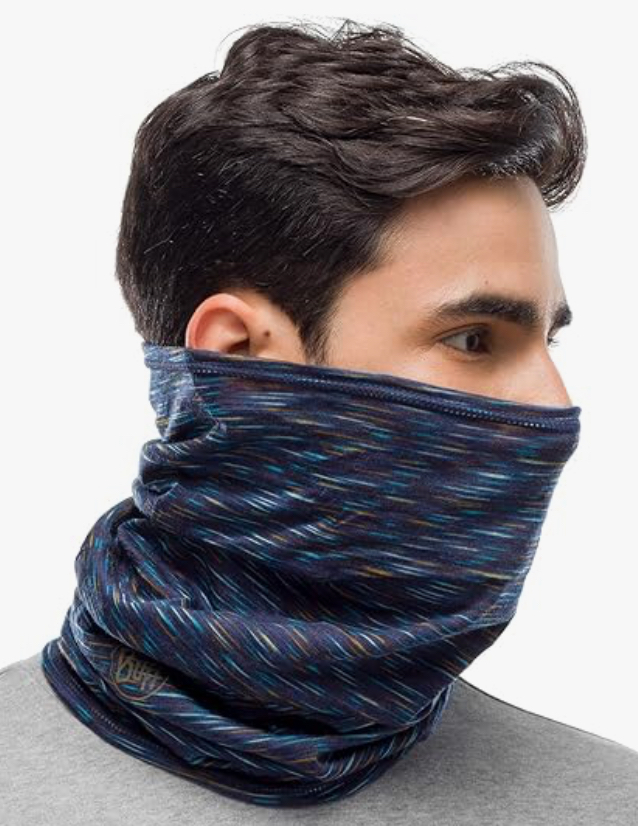 I prefer the lightweight wool ones, but they also make synthetic blends. I use it as an eye mask, for cold airports, putting my hair back, dabbing sweat, and sun protection.