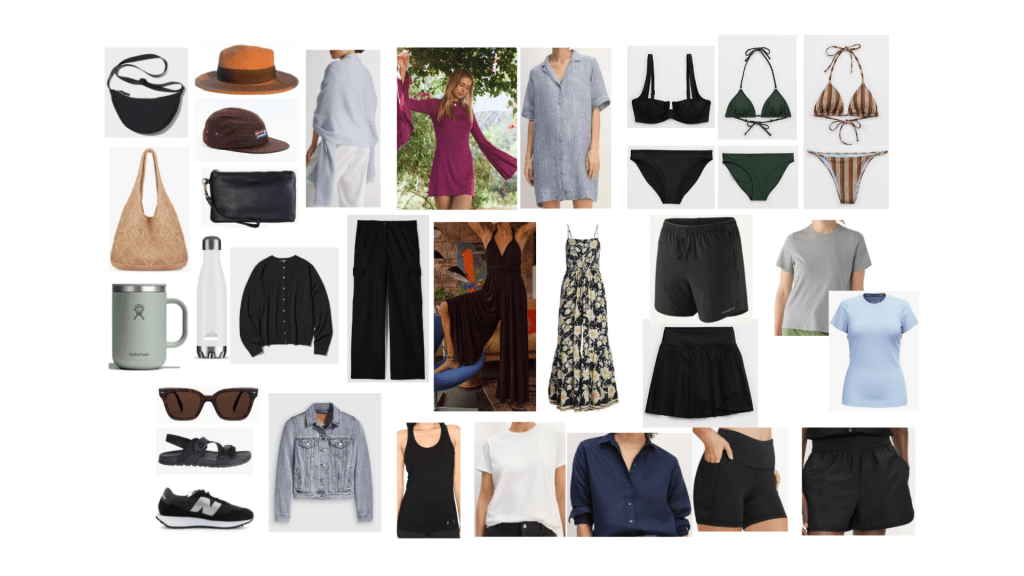 I will sometimes bring three pairs of shoes. If I need water shoes and hiking sandals, Chacos all the way! If there is only soft sand and no sporty adventures, I’ll just bring my Birkenstocks. If I have the space and feel I want a bit more variety, I’ll bring the third shoe choice instead of another outfit.