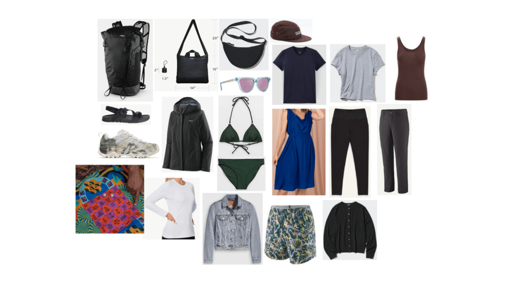 - 1x pair “off duty” pants/shorts (cotton or linen is good—you can also buy those there)