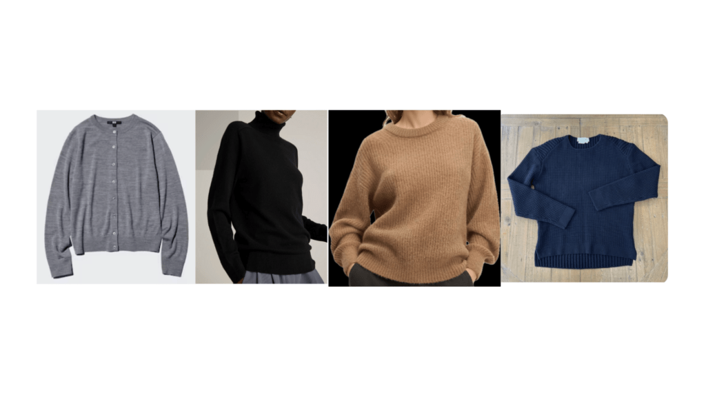 - 1x Crewneck alpaca sweater in a relaxed fit